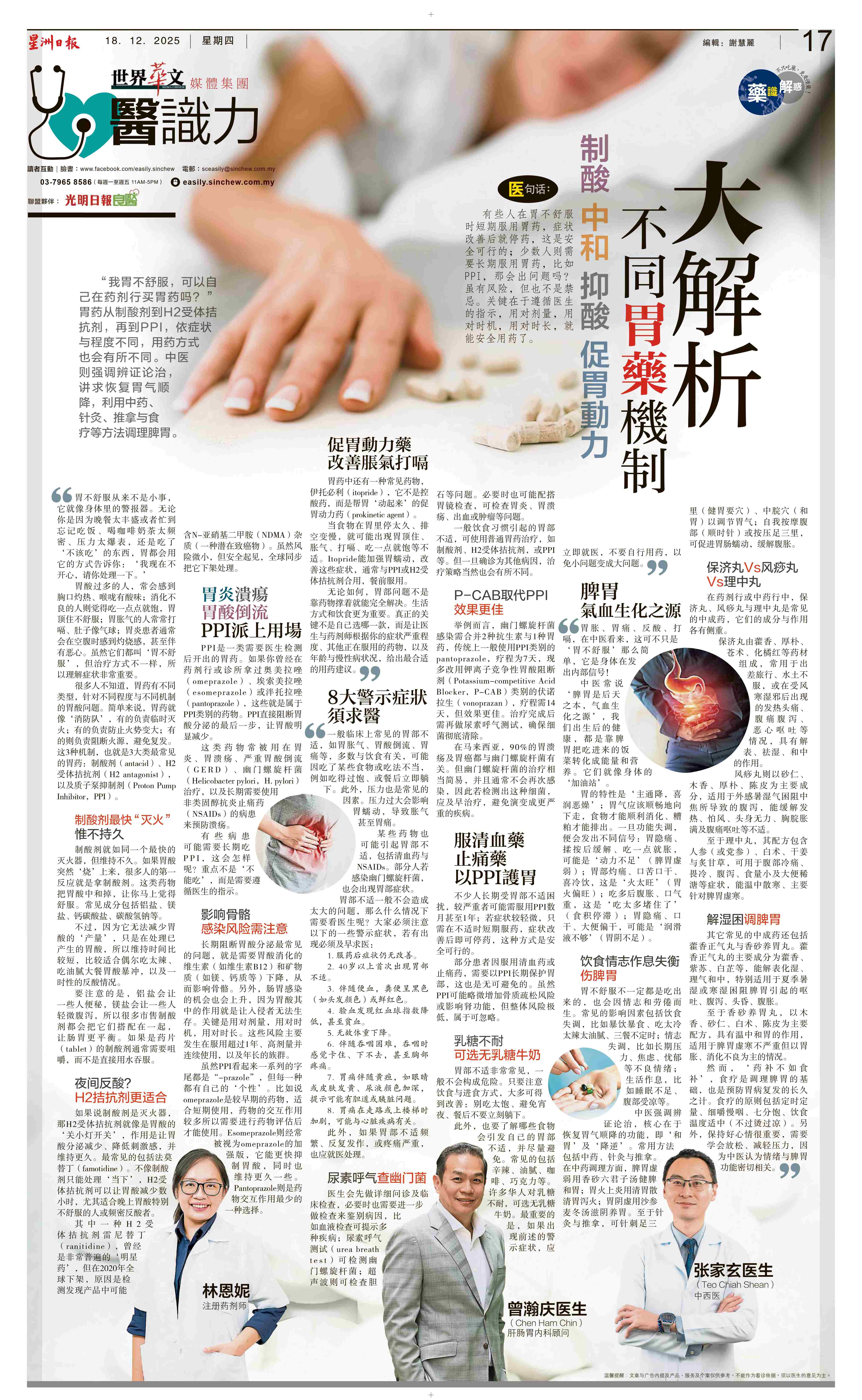 【药识解惑】制酸 中和 抑酸 促胃动力 不同胃药机制大解析 (星洲日报, 2025年12月18日)